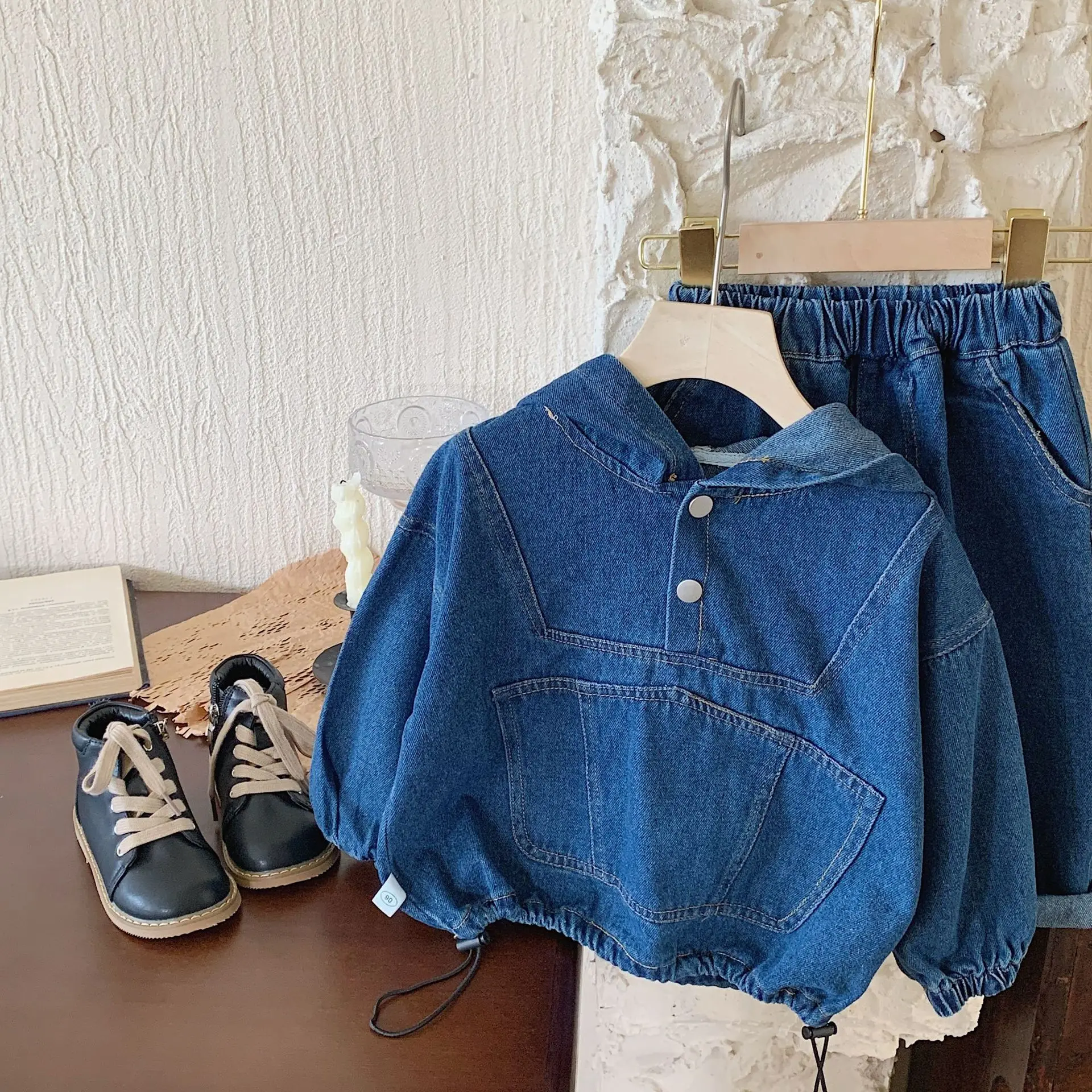 👕 Stylish denim hoodie top and matching shorts for a trendy everyday look