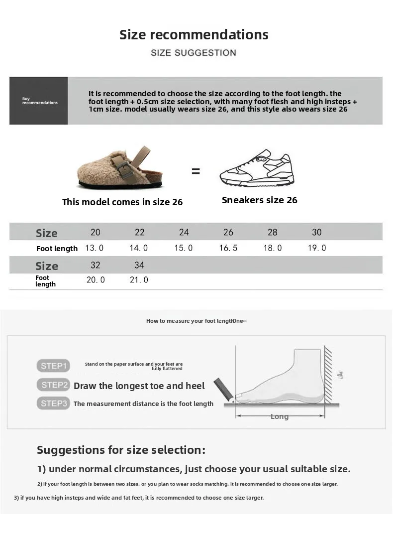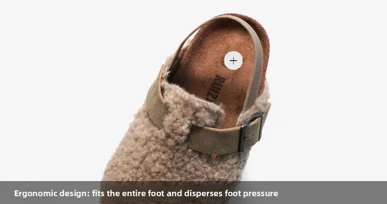 Material: Faux Shearling & Cork-Look Rubber Sole